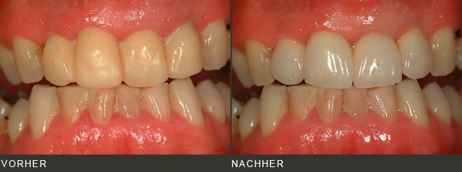 Metallkeramische Kronen auf den vier Schneidezähnen im Oberkiefer